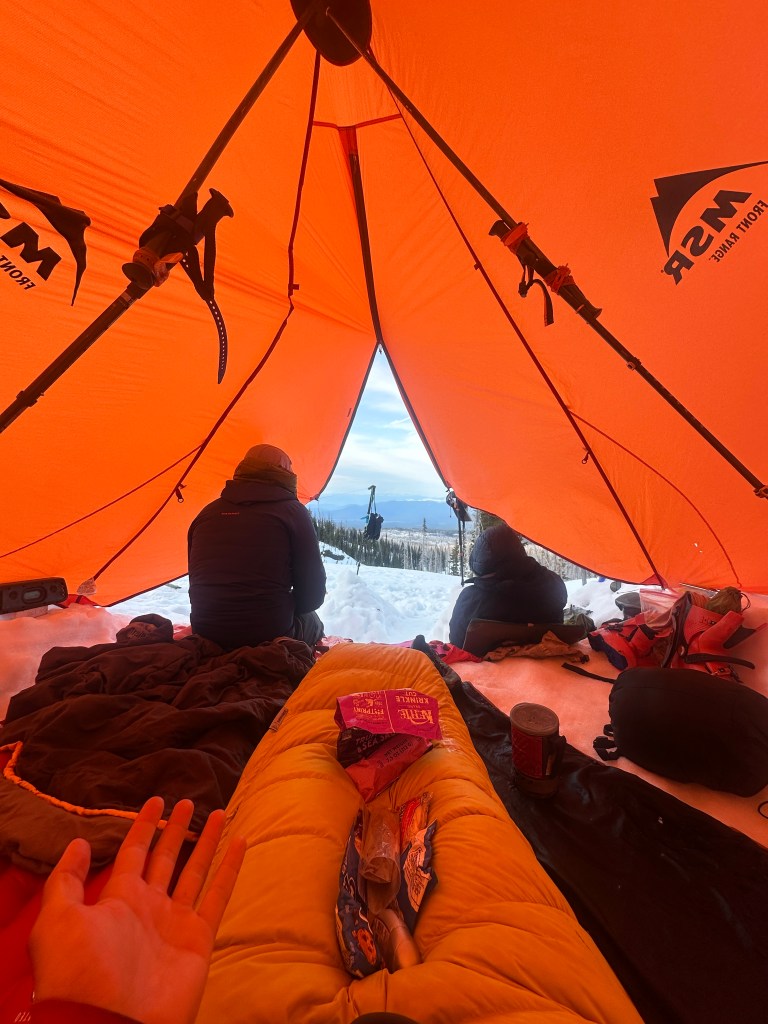 Natural groups, paces, and conversations grew as we approached the hut. This stage of establishing rapport among the group is commonplace for any guided trip. Our trip had immense pretexts of many of us being Native. Alongside us was a true ally and friend, Tucker Barney– the show’s leading man. Tucker shared his home, energy, platform, and, most importantly, his heart with the group. After catching up with Candace, Seth, and his brother, Hoon, I found myself in deep discussion with Sage and Dakota, two of the youngest folks in the crew who expressed much interest in all things mountaineering, from guiding to ski-mountaineering. Our conversational flow quickly landed us at the hut, and I had not thought much about it. Yes, I was excited to share as much as I could, especially with folks younger than me who were eager to learn. But, it was not until later that evening, when I returned to conversation with Brenda, that it finally sunk in. One of my favorite things about Brenda is her ability to curate group communication that spreads naturally to vulnerability. Under the heat of many eyes and a glow from the stove, I shared a newfound sense of calmness settling over me. Their eagerness to learn and hungry ambition saturated any excitement– my duty as a catalyst was served. I am still quite excited to see where they go and what they do, but I did not realize it would be so calming simultaneously. Not only did we achieve the handoff of the torch, but now we have more hands carrying it forward. At the beginning of the trip, my good friend Ellen of the Tlingit expressed her gratitude for opening the door and walking through it with this group. Seldomly are there large groups of Native/ Indigenous folks in the mountains together without active oppression at hand. Only celebration was found here.