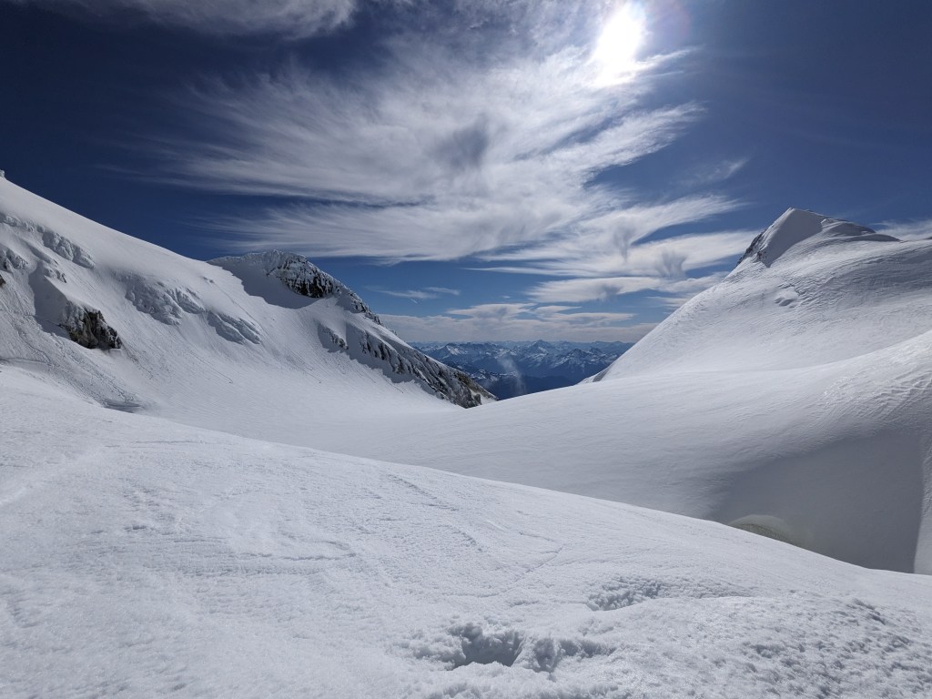 Looking across/ above the Sherman Crater, the Kulshan summit is left-center just above our descent off “The Football Field”